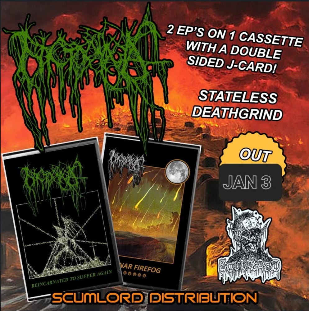 DISTRO ITEM FROM NYCTOPHAGIA/SCUMLORD DISTRO. ON BLACK AND WHITE 50/50 SHELLS. COMES WITH A STICKER.